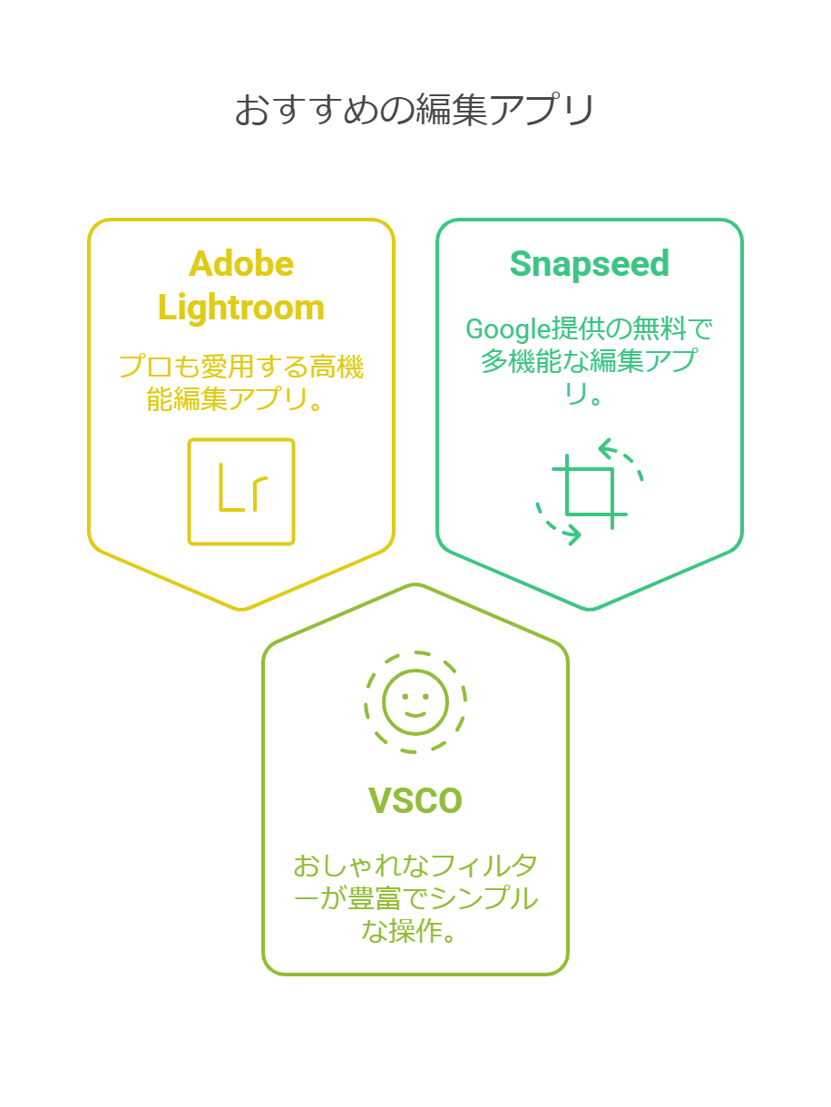 スマホで手軽に高品質な編集ができるおすすめアプリを3つご紹介します。