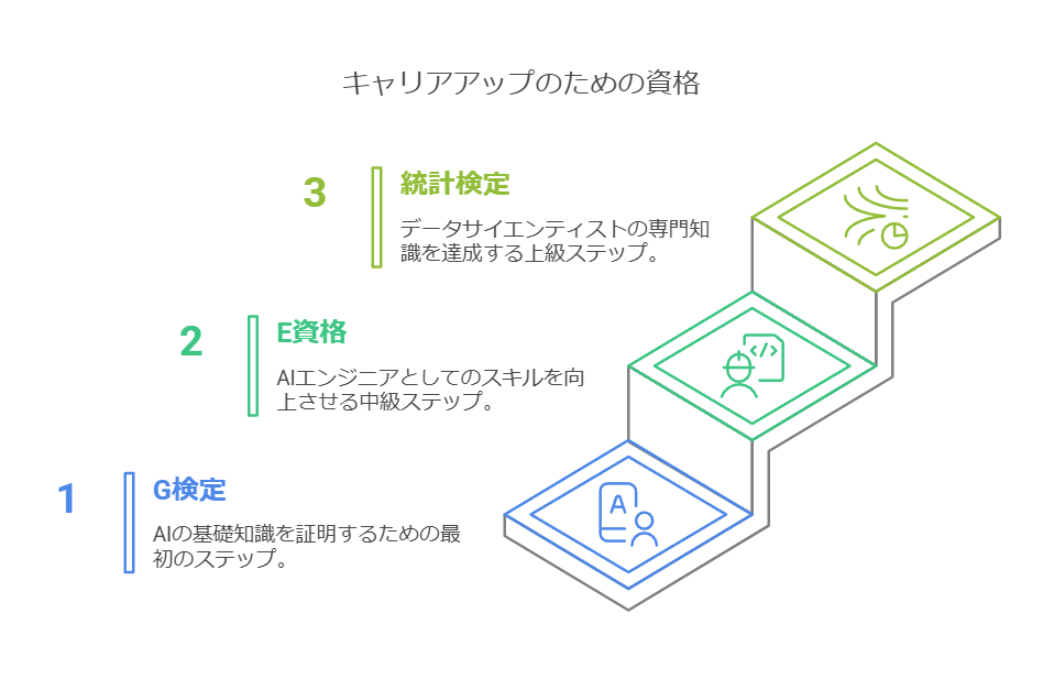 AI関連の資格を取得することで、自身のスキルを客観的に証明し、キャリアアップにつなげることができます。資格取得は、転職活動だけでなく、社内での評価向上にも役立ちます。